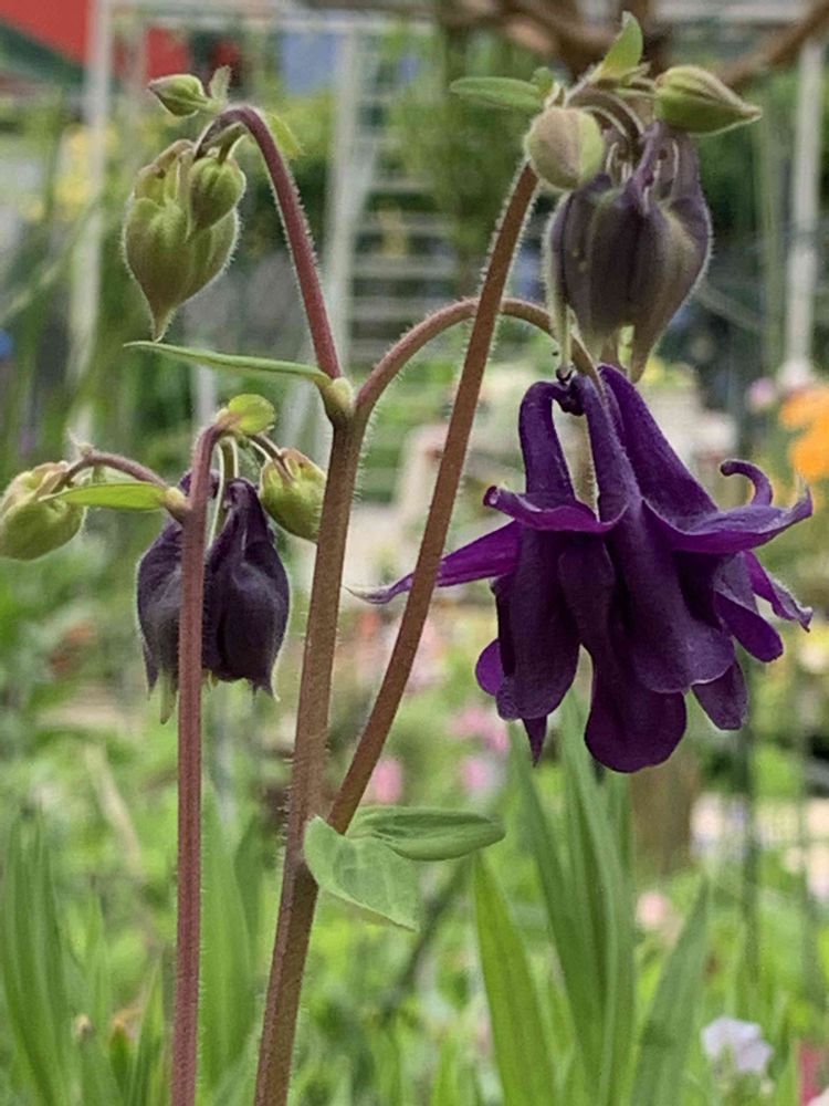 オダマキのブルーバローは、親株が小さな鉢植えで、宿根で育ってます。