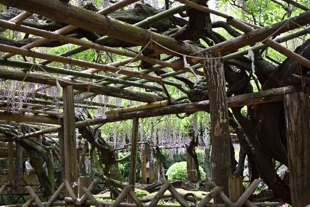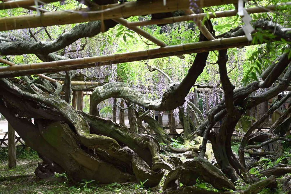 樹齢1200年の天然記念物の藤の幹が割れながらうねりながら横に這うその姿は圧巻でした。