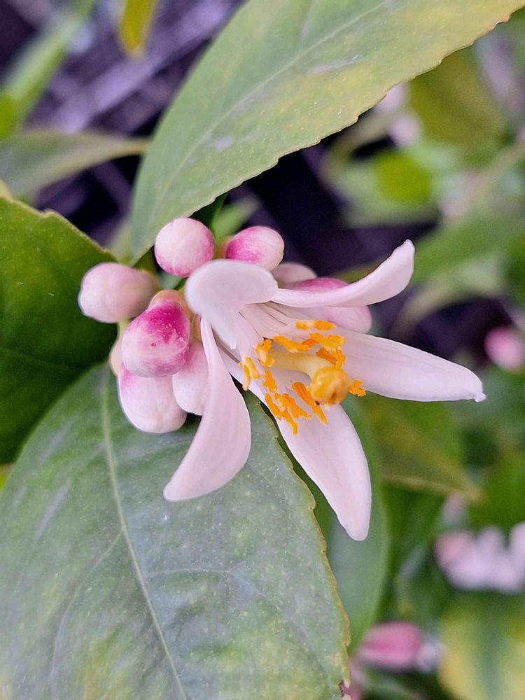 白い花のミカン、キンカン、甘夏 みんなオレンジ色になるのに ピンクの花が黄色いレモン色になるのは 不思議💛