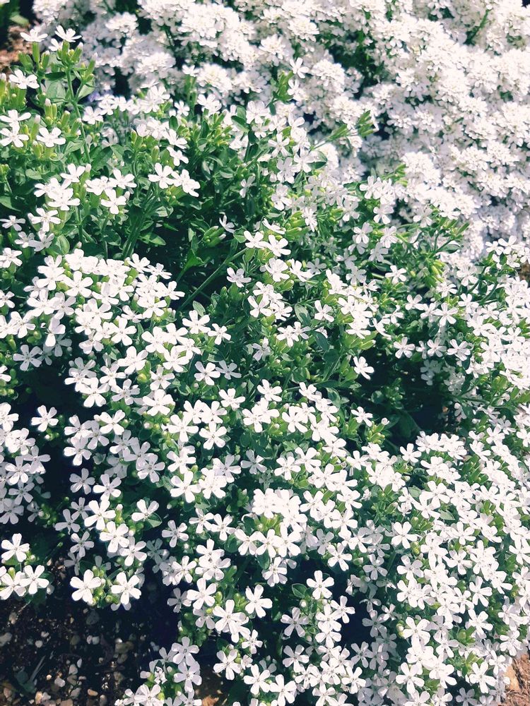 ①庭では白い花たちが涼しげです🌿サポナリアスノーチップ(手前)とイベリス(奥)