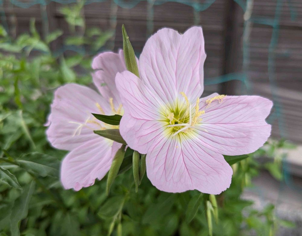 冬のあいだずっと雑草だった「昼咲き月見草」が、やっと咲き始めました。