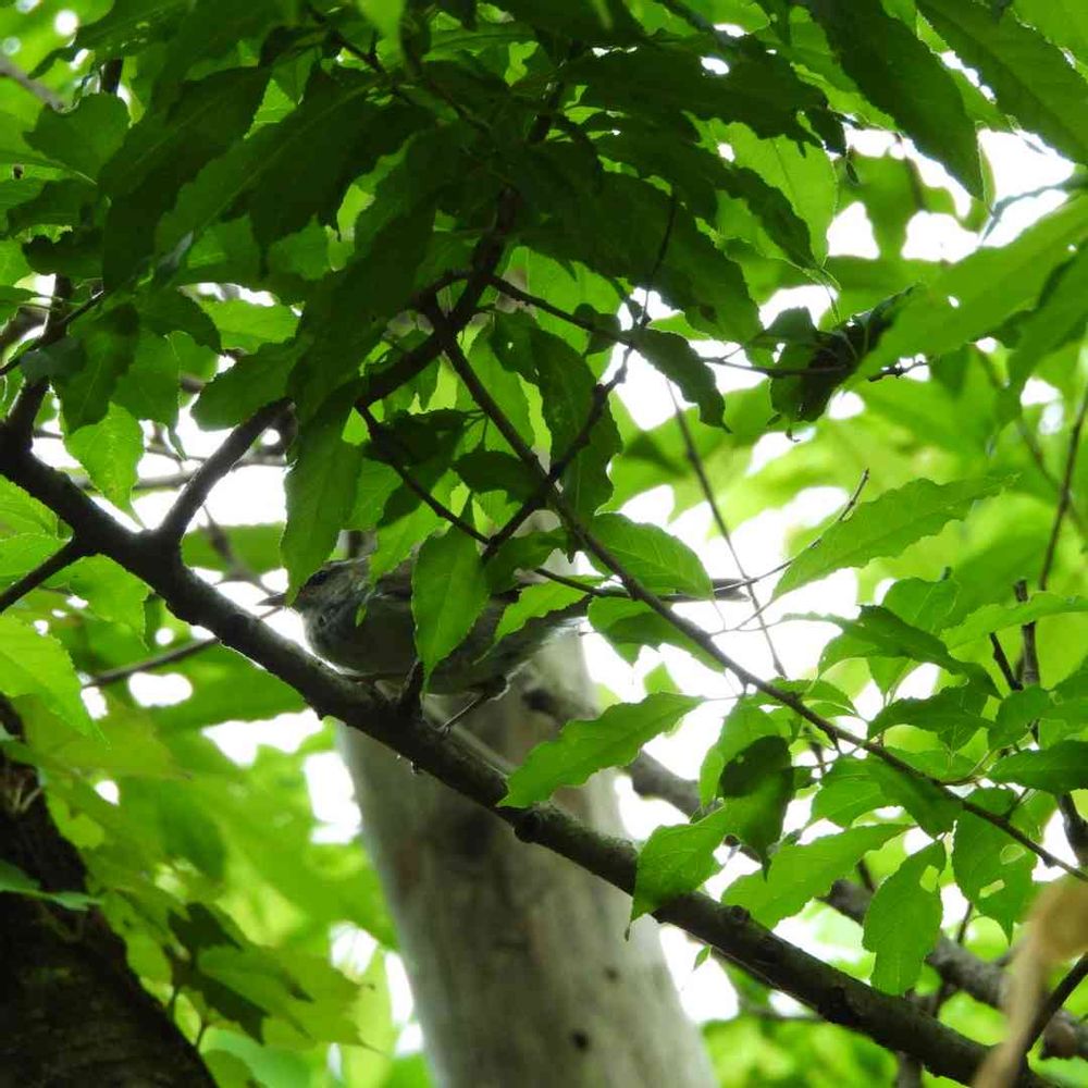 ウグイス。声だけですよね。なかなかでしたよ。葉っぱに隠れながらも撮りました。📸
