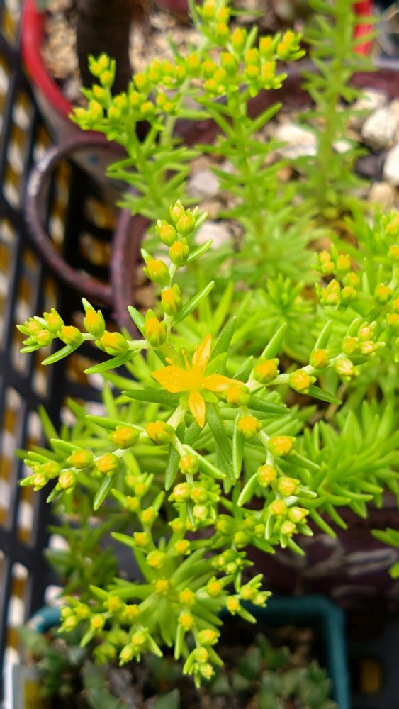 わぁー🎵、爽やかなビタミンカラーの🟡黄色い装いを見せて微笑む、セダムの花素敵だなぁ~🎵✌️