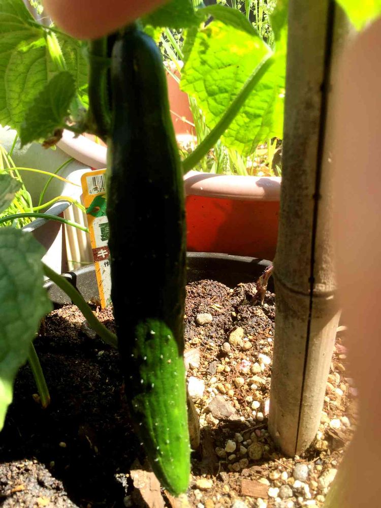 先日キュウリがなったので、念願の丸かじりして頂きました(。•̀ᴗ-)و ̑̑✧