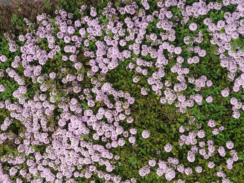 お店の方にごめんなさいして、店を出たところに可愛らしいクリーピングタイムが咲いていました。