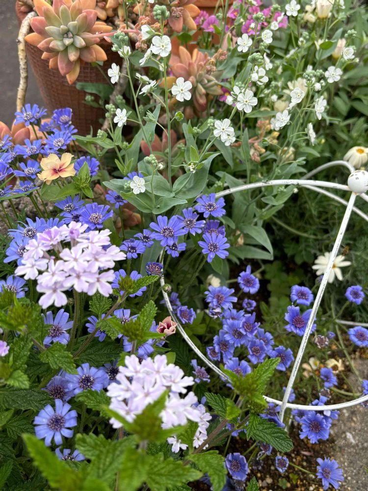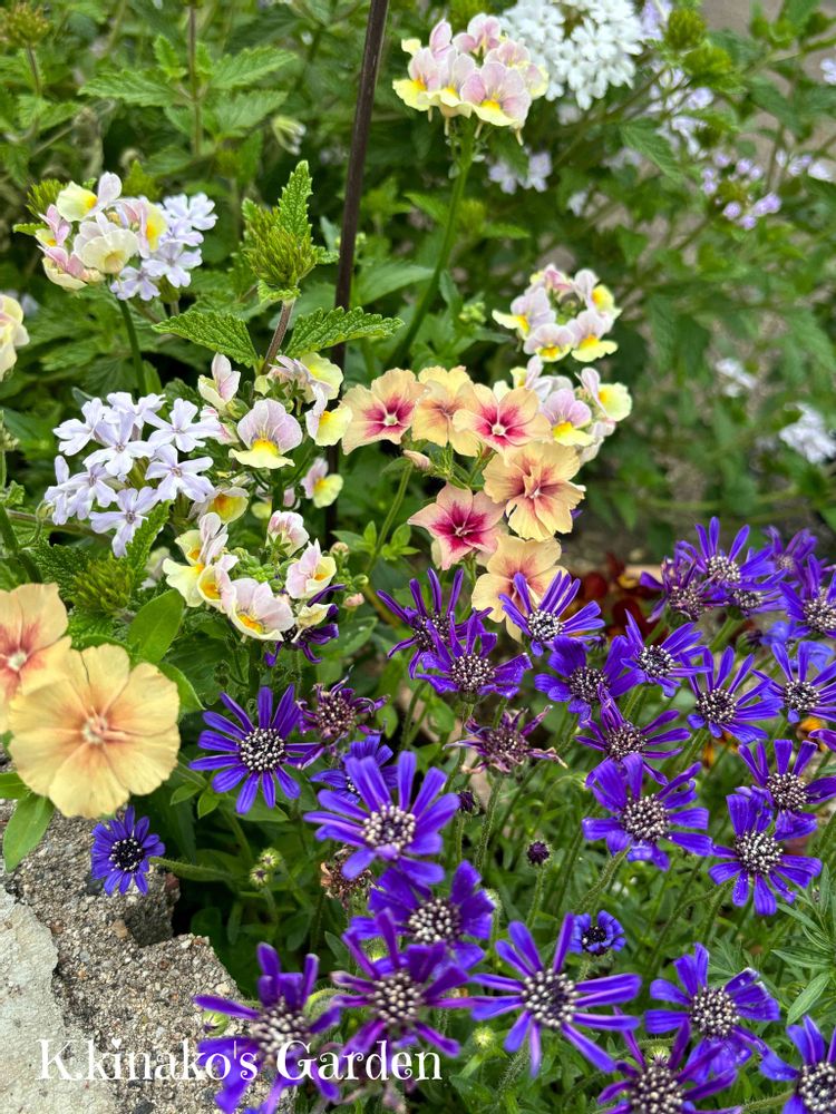 この花はヒョロヒョロしがちなので、こうやって、花に囲まれた方が倒れない、4年目にして、学習。