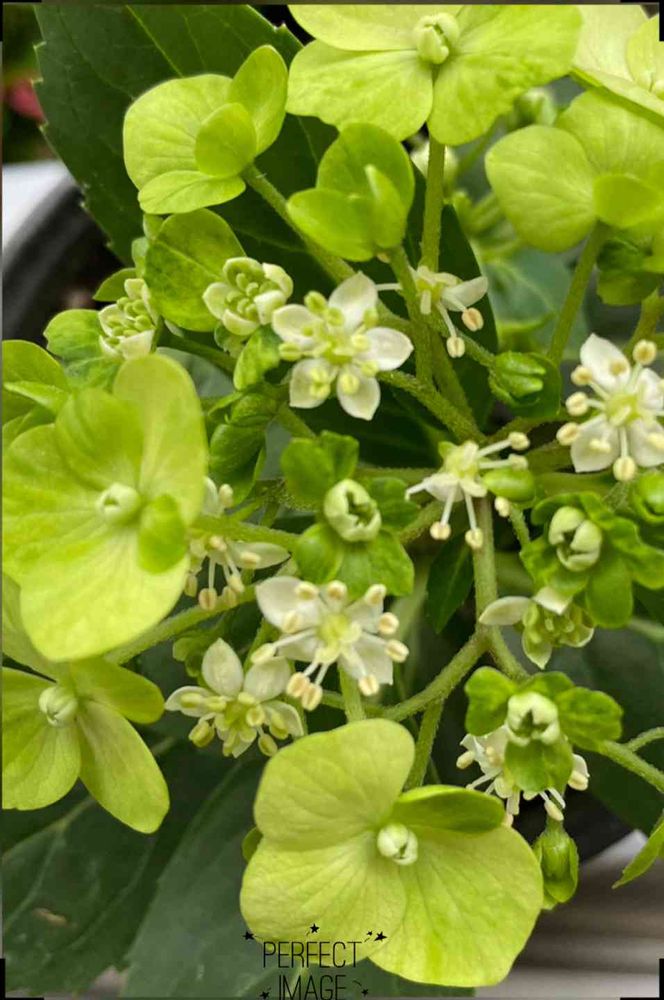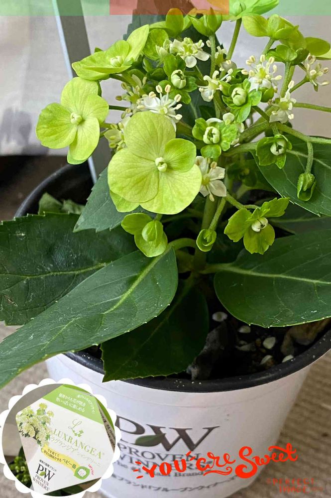 昨日、HCで3.5号鉢に入ったチビ苗が3種揃って入荷したところでしたが2種はお花を見た事があるのですが…この子はテマリ咲き緑から白に変わる‼️🫢