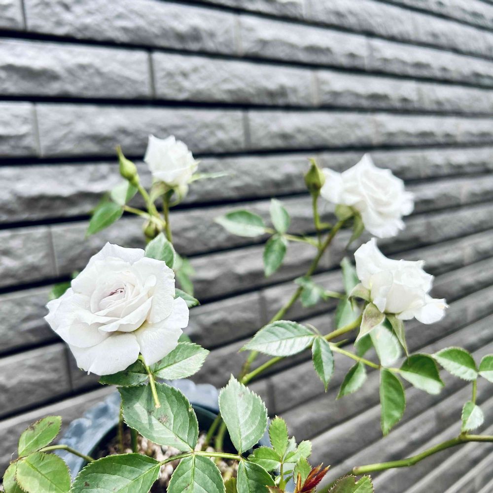 ロサムルティーフローラ🟰日本の棘無し野薔薇。接木の台木によく使われるらしく、野薔薇原種だから、めっちゃ強健よ〜何もしてないよ〜完全無農薬‼️なんなら肥料もあげてない‼️香りもよくて玄関でると凄いいい香りする今だけ😆健気で素朴な感じがとっても好きで、この子が最初に薔薇好きになった要因なの♡ほったらかしで、この通りだったから。