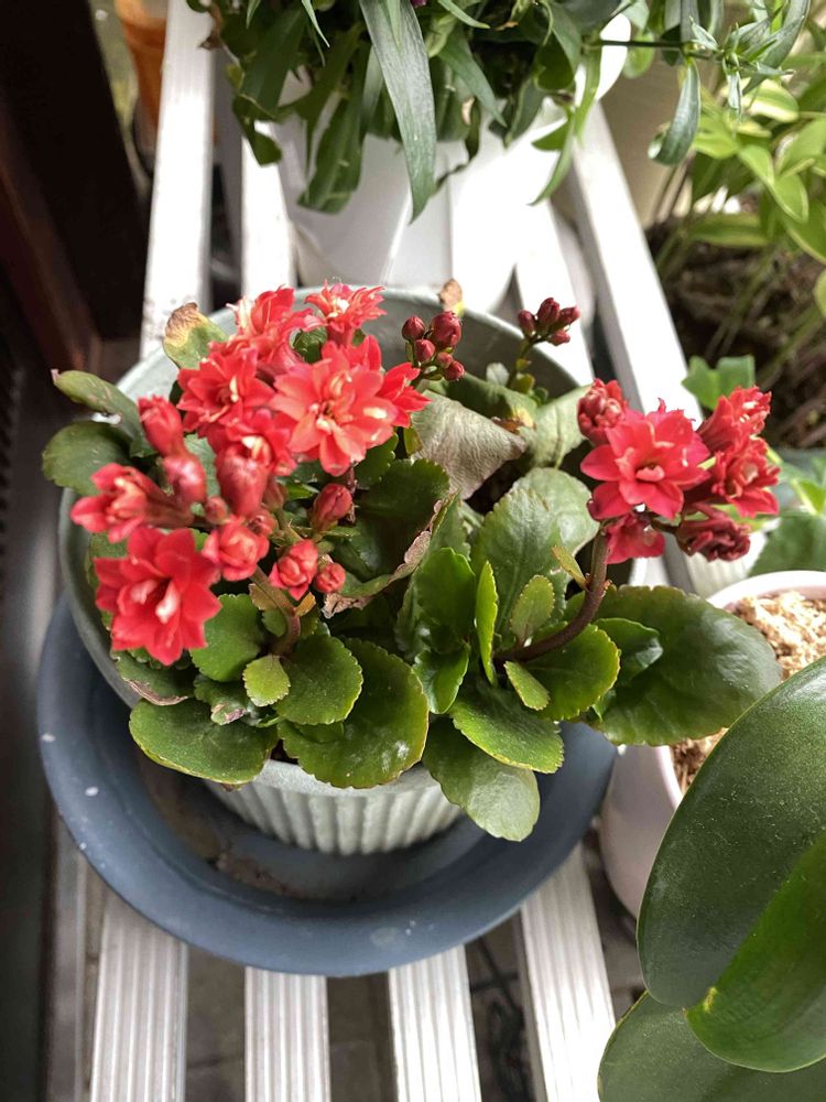 5️⃣カランコエ、親株は❄️にやられちゃいましたが、挿木しておいたのが咲いてホッとしています