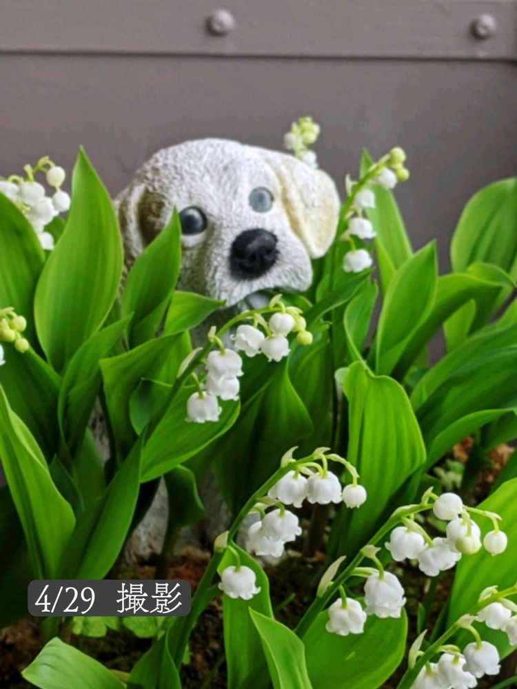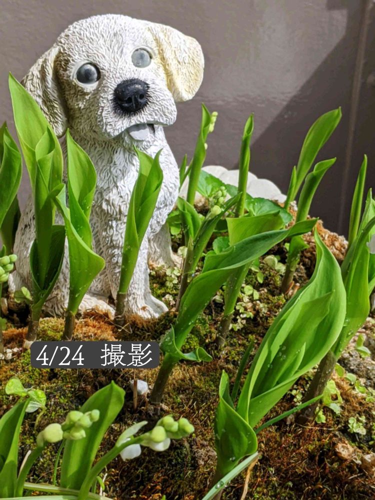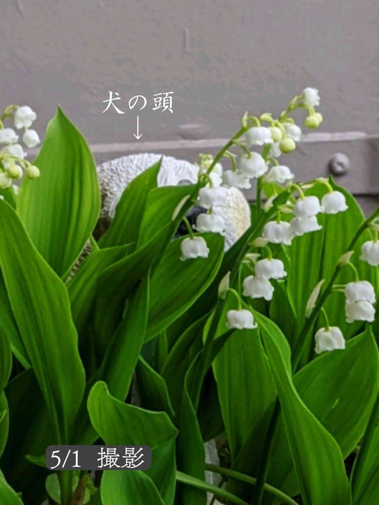 スズランの花も終わり 今は葉っぱの中に ••• 秋口までワンコは隠れん坊で〜す