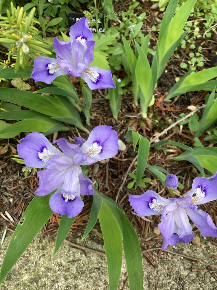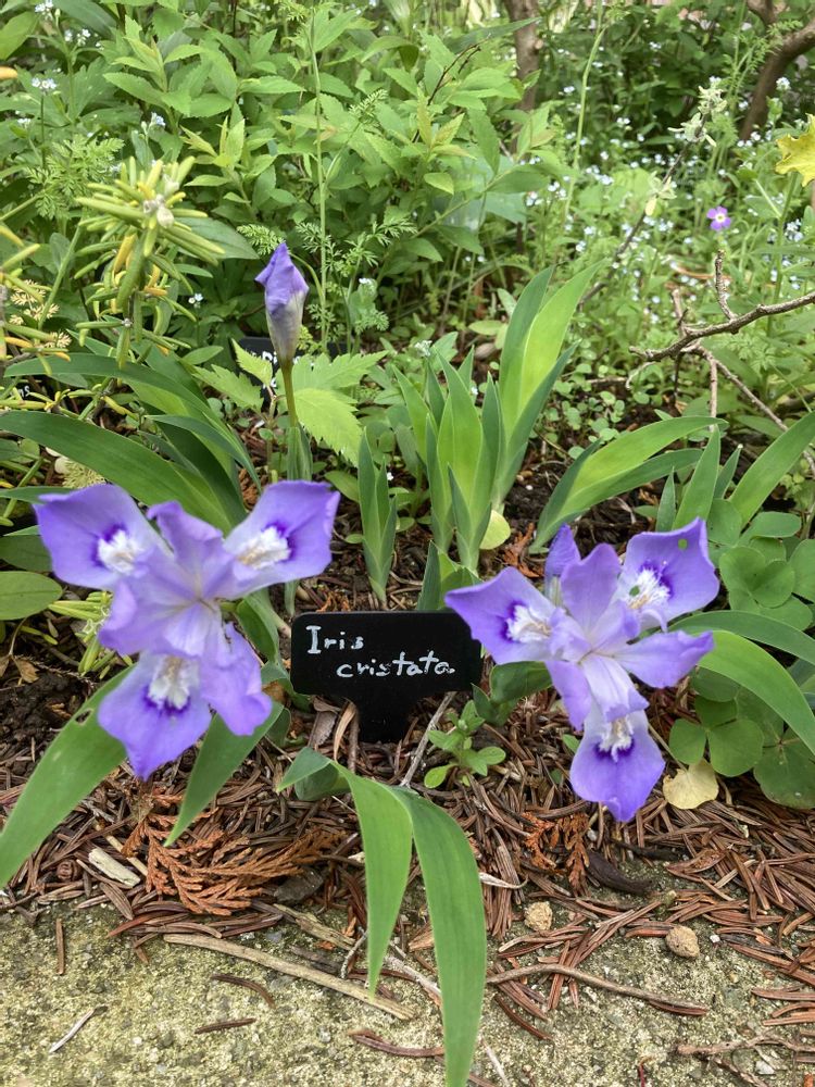アヤメに続いてイリス・クリスタータも咲きました。小さいながらアヤメ族を主張しています。