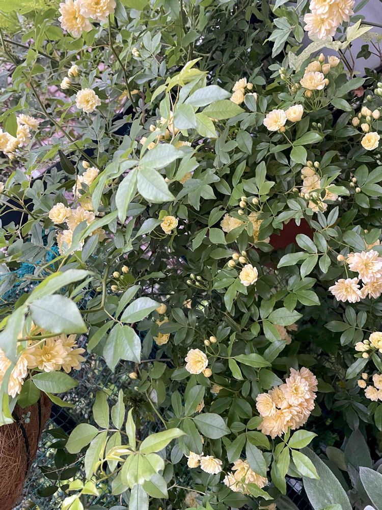 モッコウバラって、家も有って嫌いじゃないんだけどさぁ、、、あの、花後がさぁ😅😣😅😣だから、いつも茶色くなる前にそっと、お花を握って、チョキチョキ✂しちゃうの😂😂😅