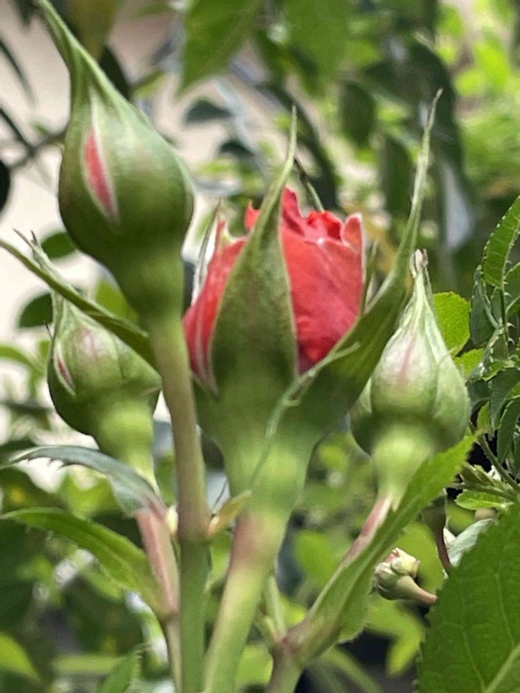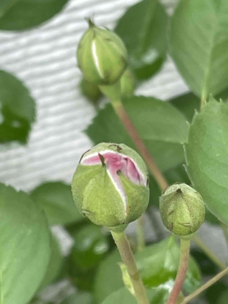 薔薇🌹の蕾が割れて色が見え始めるとワクワクしちゃうね〜❤