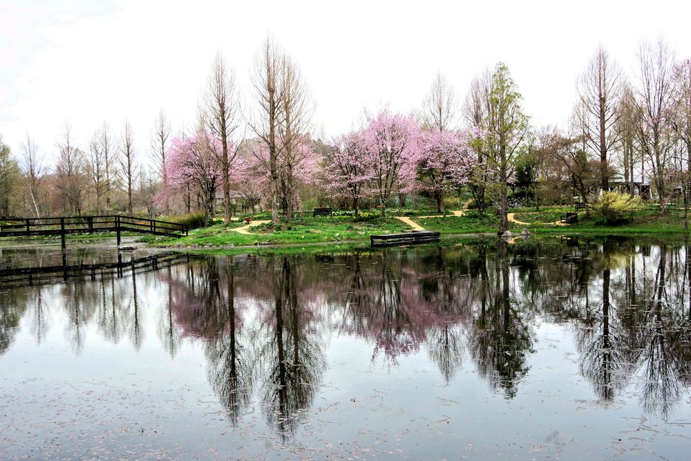 都会の喧騒から離れて、静けさの漂う湖面のリフレクションを楽しみながら散策していると、木々の間から鶯の啼声が聴こえてきました