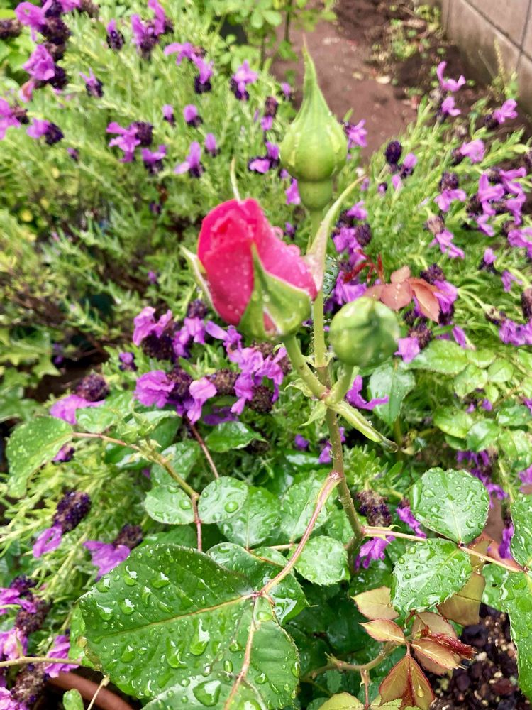 ラベンダー、雨上がりで喜んでいるかも🤭我が家は軒下がないからスパルタで💦…こんな環境下でも、こうしてたくさん開花してくれて良い香りも広がりありがたい限りです💜