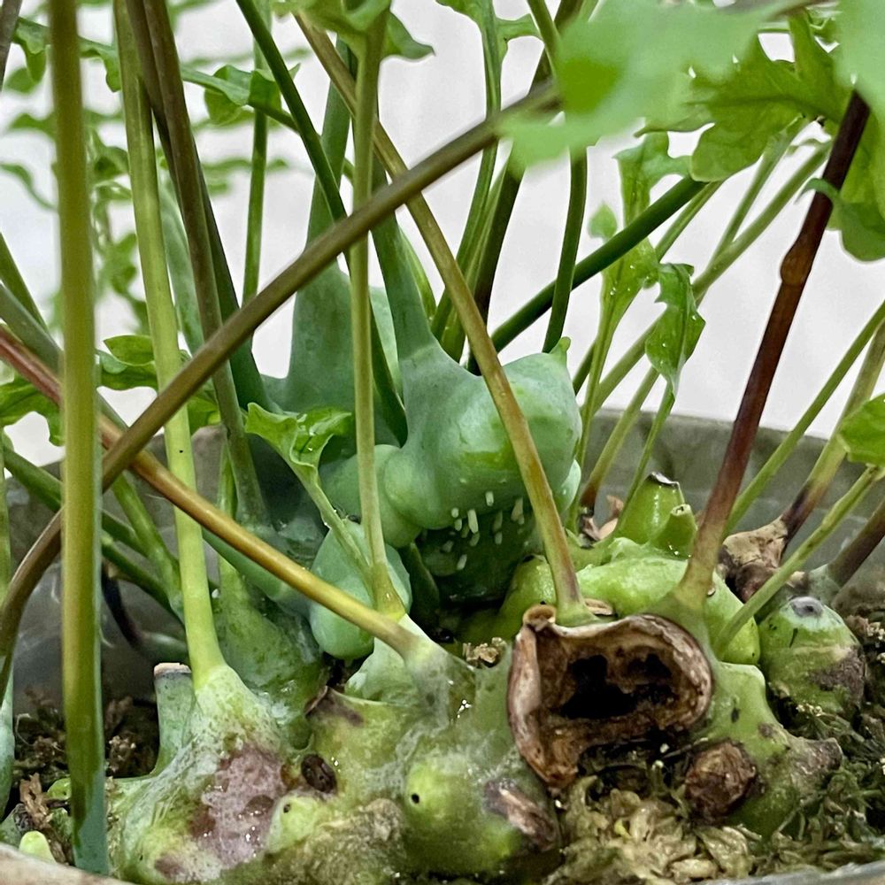 鉢に根茎が広がるスペースがなくなってきて、ついに根茎が重なるようになってきちゃいました。限界っぽいので株分けか板付しないと💦