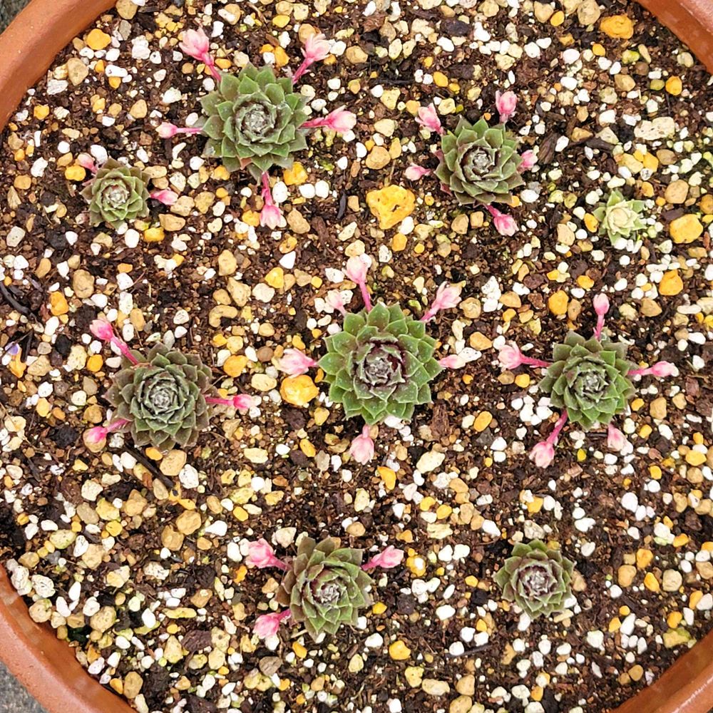 ピンク色した子株たちを見て欲しいのですが、赤玉土なんかが邪魔してわかりづらい😣💦⤵️