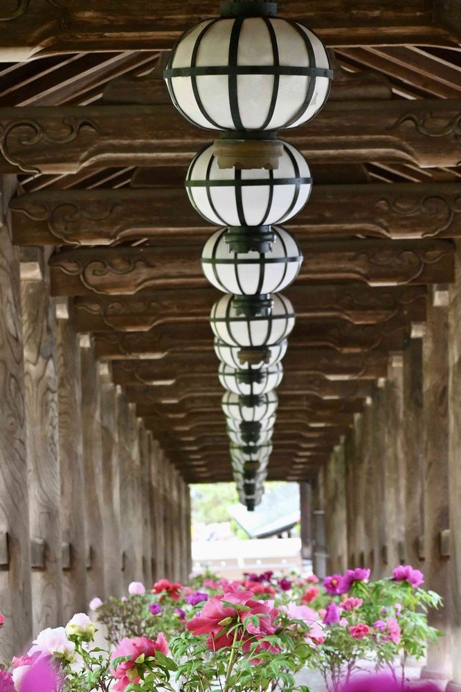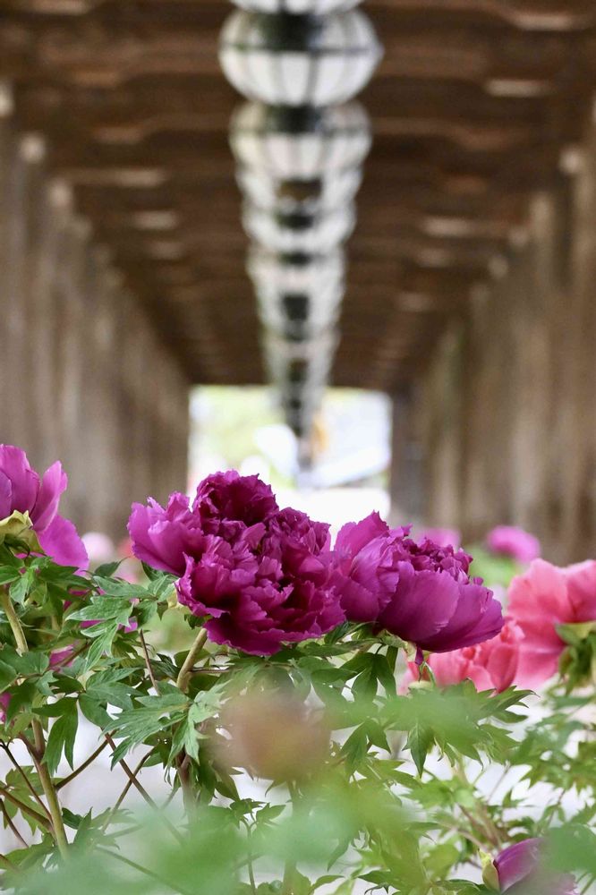 2️⃣登廊の灯籠の下が牡丹畑に🎶