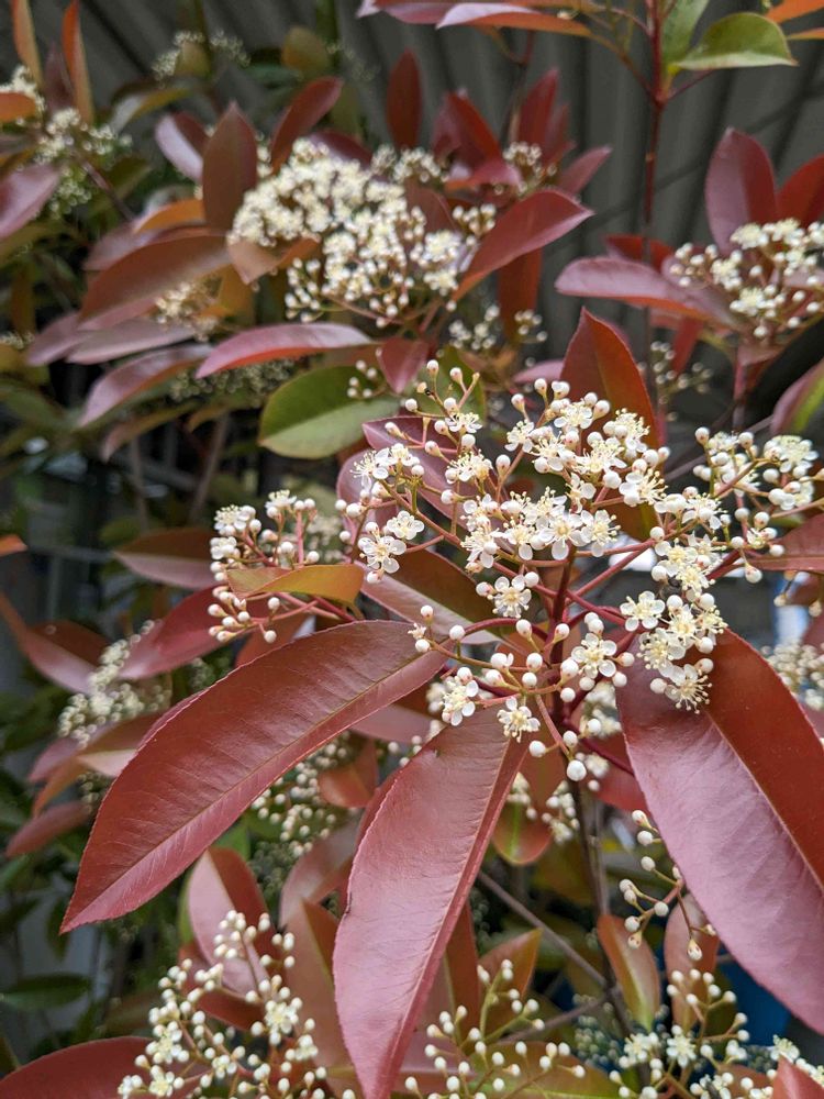 赤い葉の中で咲く小さな白い花✨本当に可愛い〜♡ですね~🤓👌👍🫶
