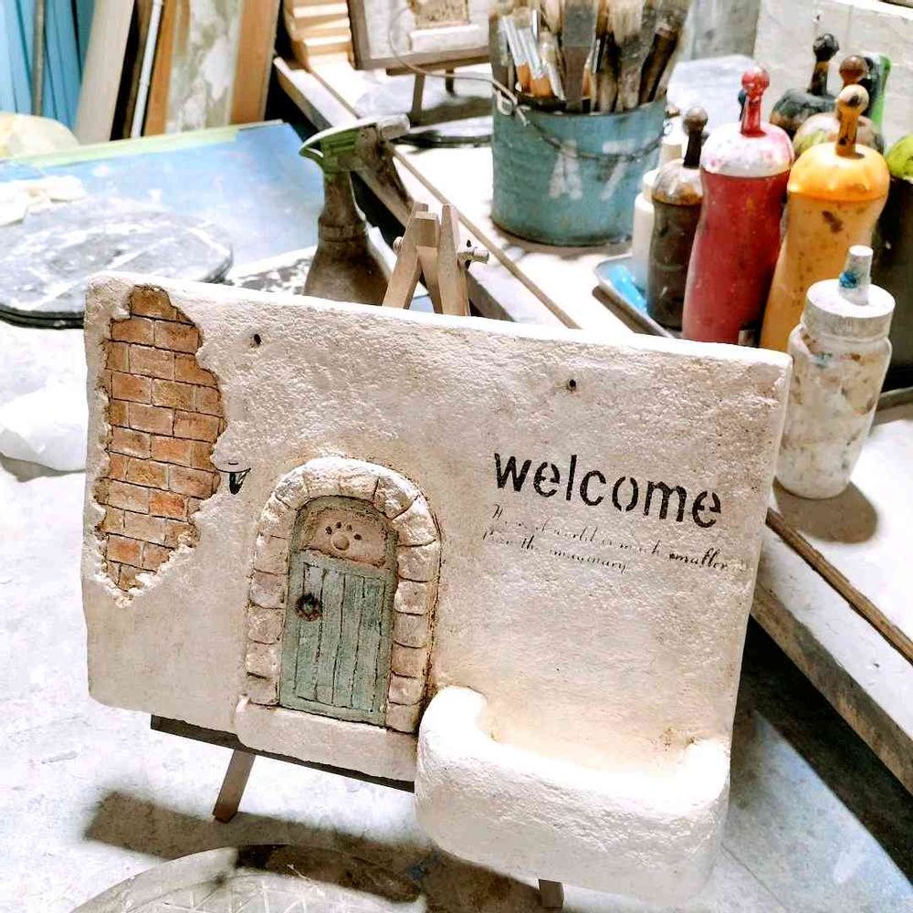 レンガ部分と石造りの扉部分の造形を習い、2回目の今日は色付け、ステンシル🎨