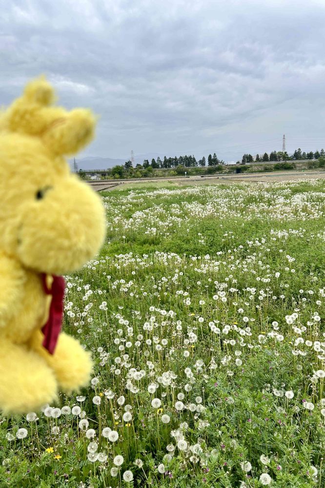 たんぽぽ畑に一緒にお出かけをして左手にウッドストックを持って右手で撮影してきました🤗💖