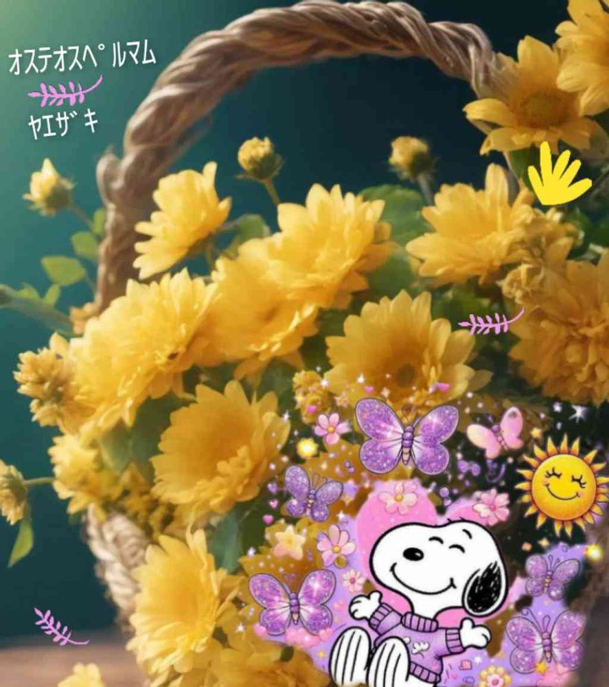 美しいハナカゴの中のスヌーピーさん可愛いです😆🎵🎵