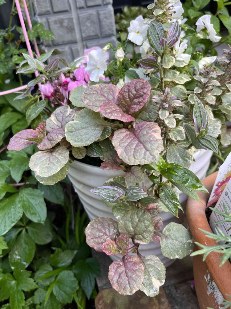 複雑な色の葉はご存知のアジュガバーガンディグロです🌿