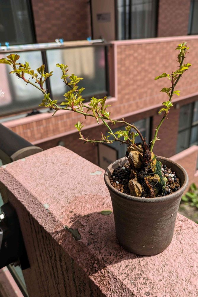 昨年、根伏せで作ったノイバラ盆栽。