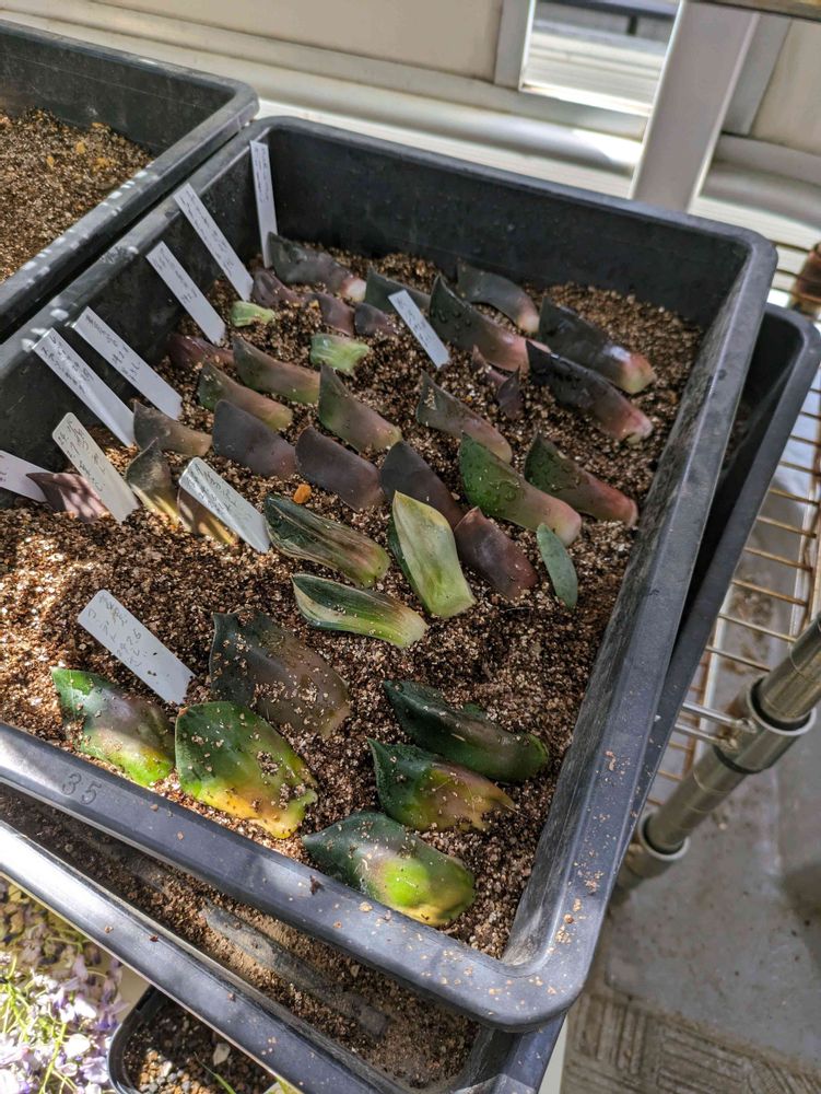 ハオルチアたちの植え替えした時に外した下葉がずいぶん発根していました。斑入りの葉っぱからも発根していたのでちょっと期待が高まるなぁ