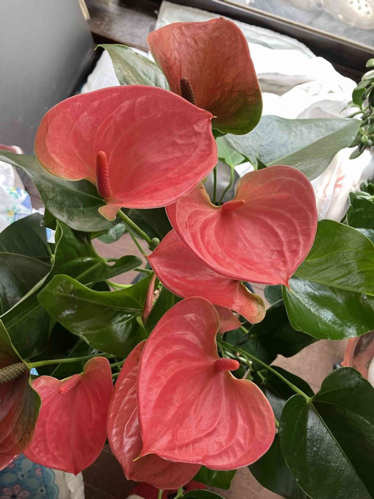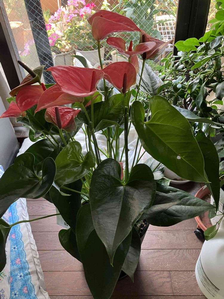 室内用にお迎えした大好きなアンスリウムさんです。ちょっと大きな鉢ですが、多分、これが最後にお迎え出来る子 かなーと思いますので、可愛がっていきたいです。🪴ハート❤️型の葉っぱ🌿形やお花(花ではなくて包)が可愛い🩷🩷🩷です❣️