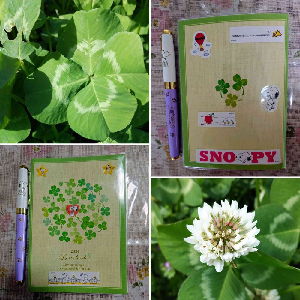 今年はオリジナルのスヌーピーの手帳が入手できず、好きなクローバー柄の手帳に大好きなスヌーピーのシールを貼ってカスタムしました( ꈍᴗꈍ)♡