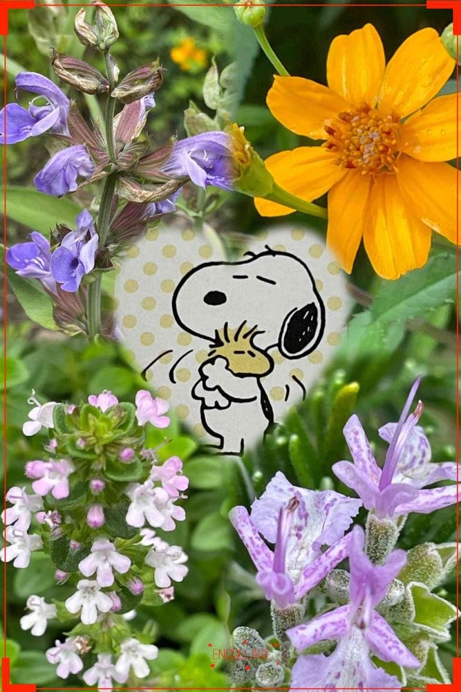 スヌさん真ん中でハーブ🌿の香りを楽しんでるꉂ🤭想定に