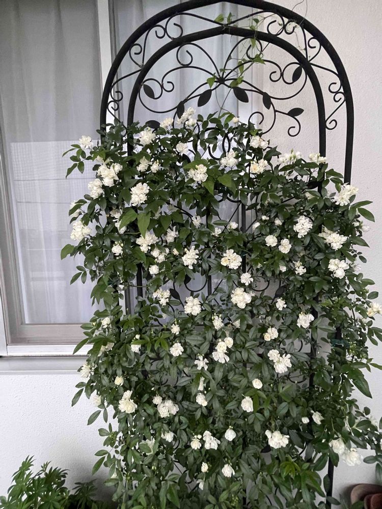 ももりあさん、ピューレッツア🥀見に来ました╰(*´︶`*)╯♡素敵なトレリスに可愛い白薔薇がよく似合って素敵ですね💕