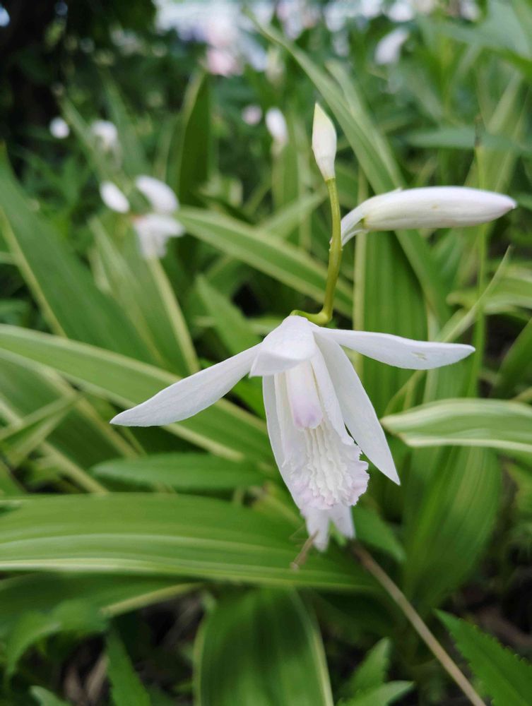 白い清楚な装いを見せて咲き誇るシランの華やぎ素敵だなぁ~✌️