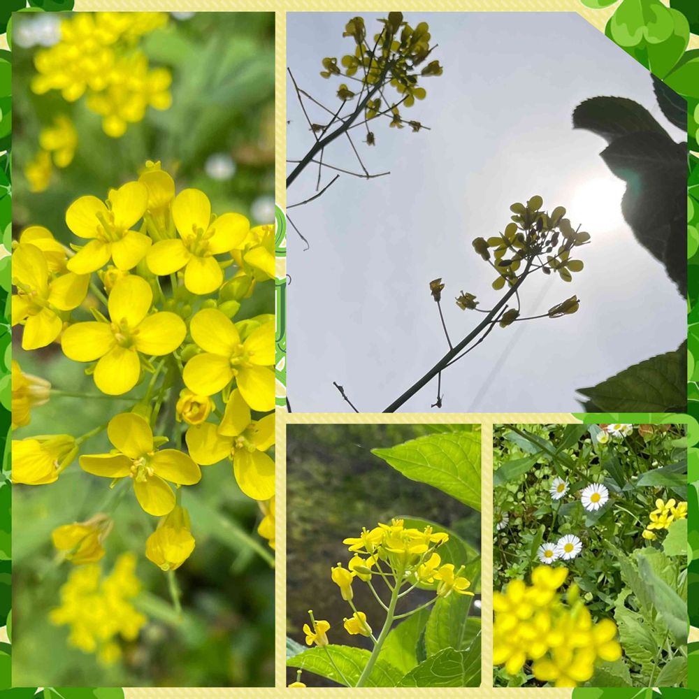 今頃、菜の花です。紫花菜と菜の花の種を蒔いた(つもり)のですが、菜の花しか出てきてくれてないのです。おかしい、こんなはずでは😩😭😓