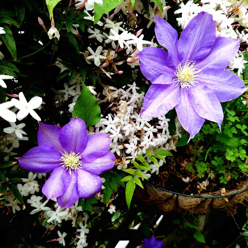 クレマチス「H.F.ヤング」とハゴロモジャスミン