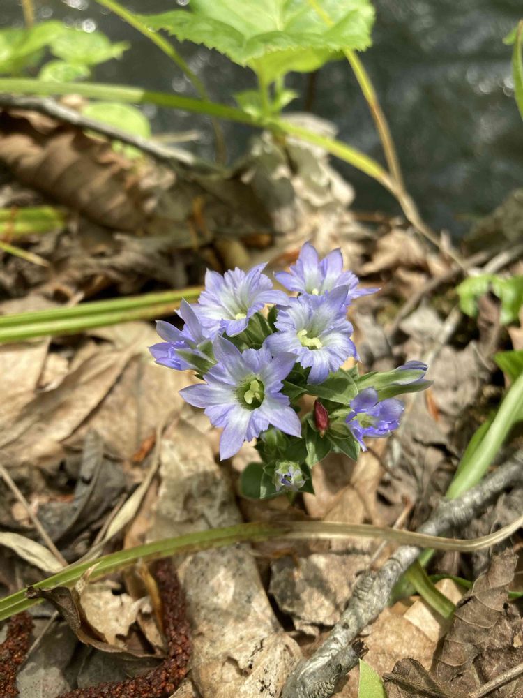 フデリンドウが時々現れました。遊歩道脇の踏まれそうな所や水辺の岩の上?
