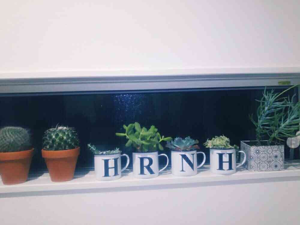 玄関の窓辺の多肉さんたちの、入れ物を可愛いく変身させました★