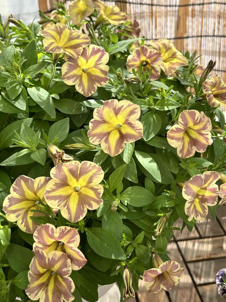 1️⃣2️⃣冬越しして✨二度目の春のサントリーサフィニアアートとらネコ😊花が次々と咲いています🎵 3️⃣こちらも一緒に冬越しした🎶サントリーミリオンベルプチホイップのマーマレードです✨こちらも元気に咲いています☺️ 4️⃣去年11月から育てているテルスター✨どんどん咲いてます😁❣️
