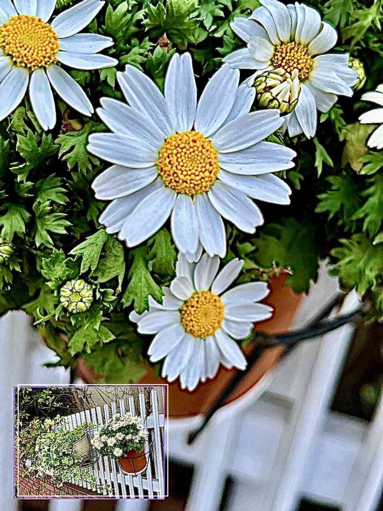 /白いフェンスに赤茶の鉢、そこに観るは清楚な白い花/,ノースポールギク(ノースポール/カンシロギク<寒白菊>)の投稿画像
