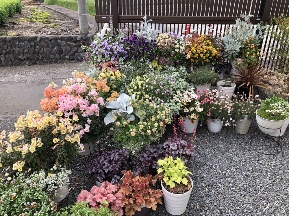 昨年から作り続けた寄せ植え達ですが、最後に散歩してる方に見てもらおうと思って道路沿いに移動したした。