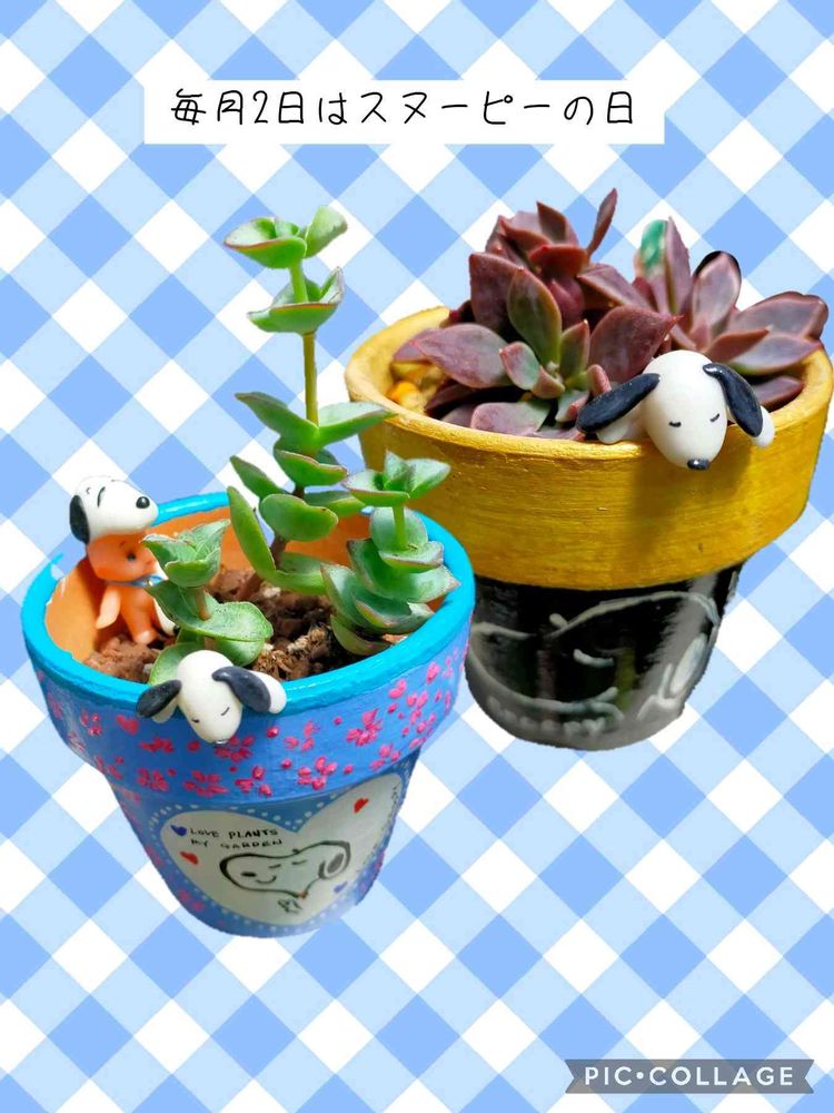 マイメロちゃんにいただいた、可愛いスヌーピーのリメ鉢&引っ掛けスヌーピーちゃんで参加︎します💞💕