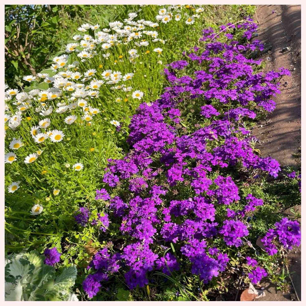 ③〜⑤バーベナ・タピアン💜🩷🤍雑草対策に昨年お迎えしていい感じに広がってきました♬