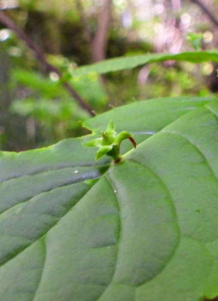 大きな葉の上に可愛いハナイカダ(花筏)の花が咲いていました💚🌿