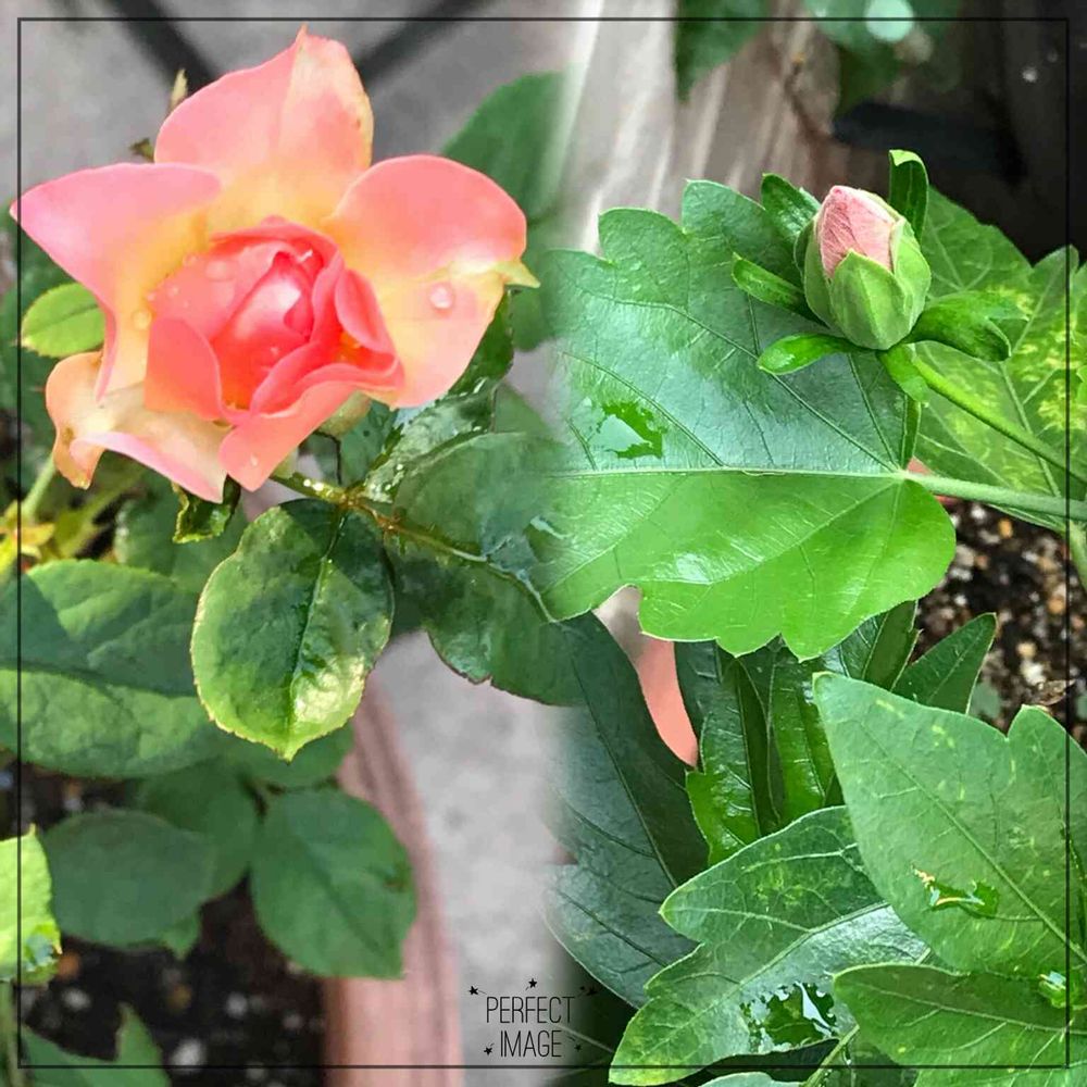 ミニバラ🌹とハイビスカス🌺のコラボ咲きが、あと少しみたいですね😊