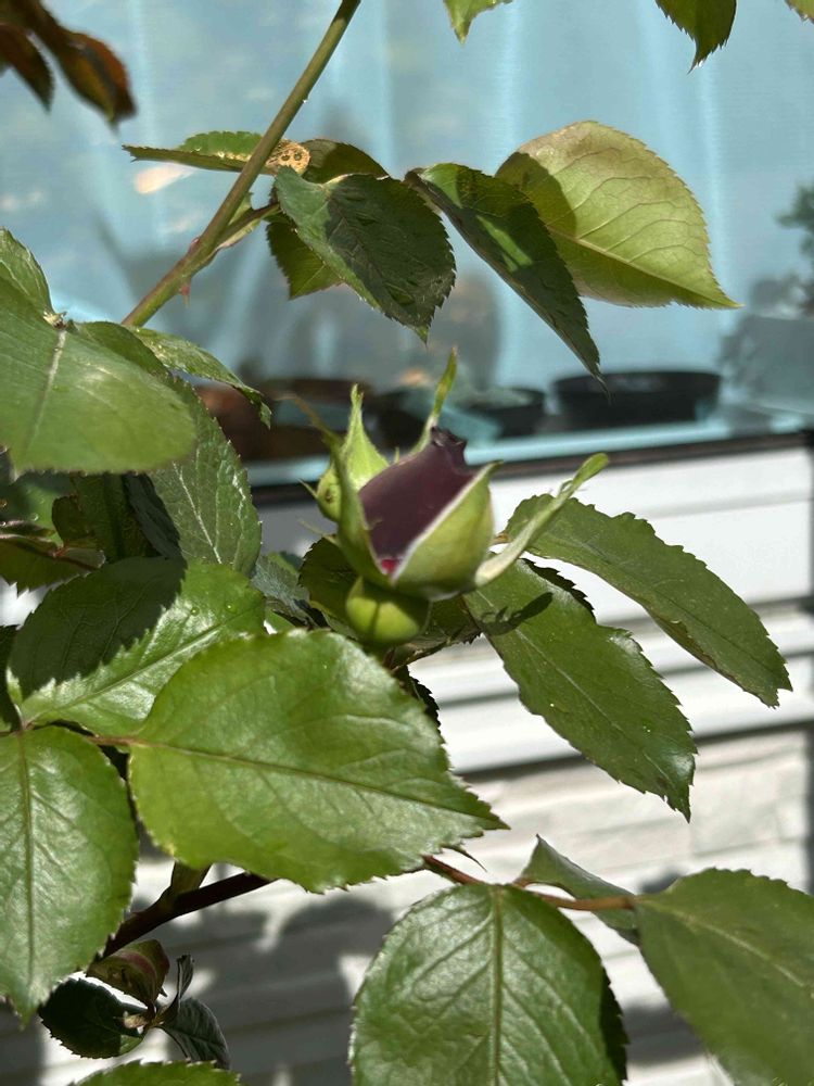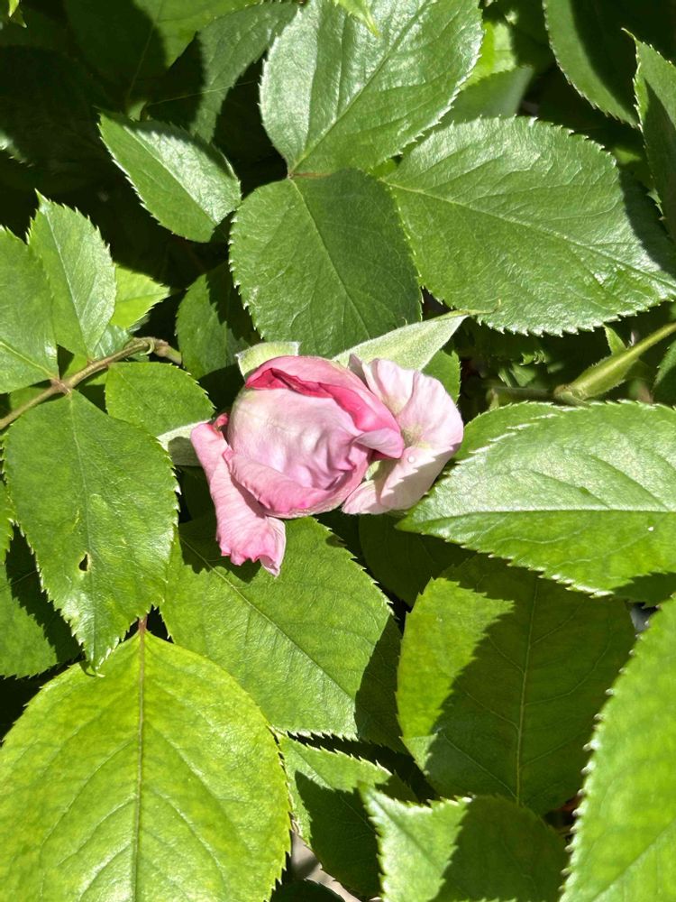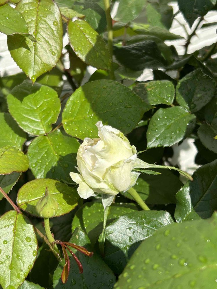 最近風が強くて、隣り合ってる薔薇の枝が絡まってたのを整理してる最中に見つけました😳