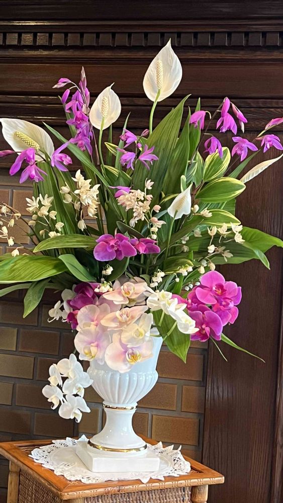 何て豪華💠🌺 上手に活けられてますし 胡蝶蘭を中心にお庭の花を