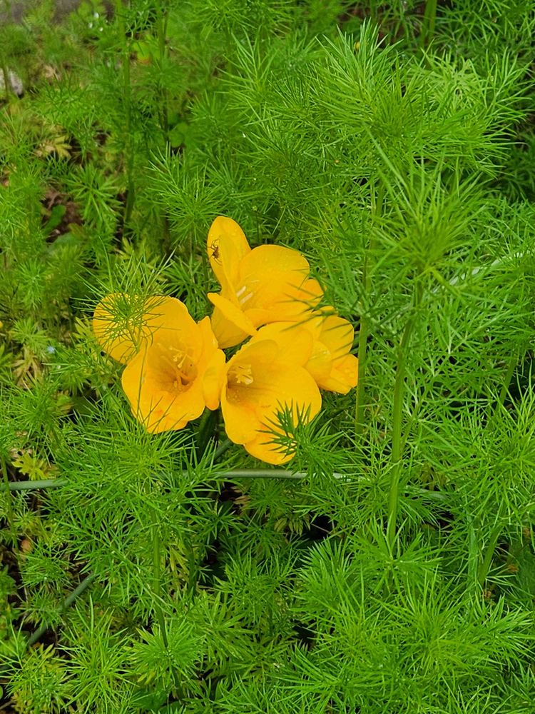 可愛いフリージア💛💛💛さんがグリーン💚💚💚💚のニゲラさんに囲まれてとてもステキですねー💓💓💓