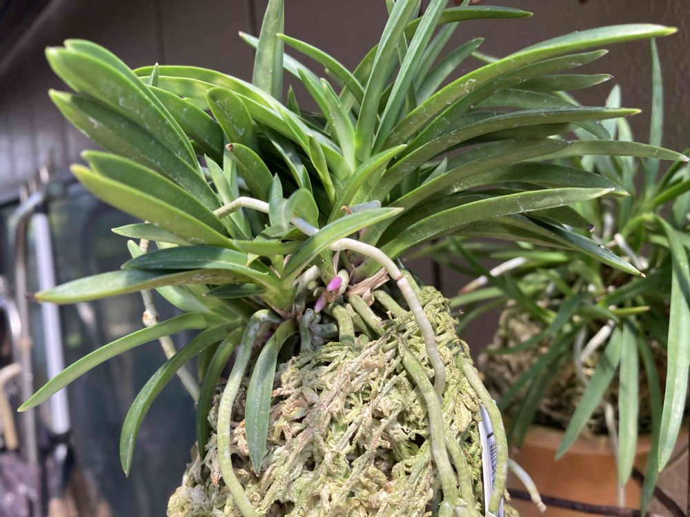 陽が当たる根はピンクが強いルビー根に変わります。鉢の中や株裏の根は陽が当たらないので白根で伸びます。陽が当たると白根からルビー根に変わります。