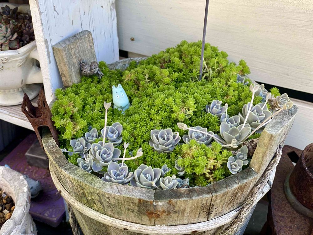 ②時々ムーミンも遊びに来てるけど、今日はセダム風呂に入ってます③♨️🌿🤣